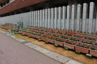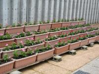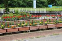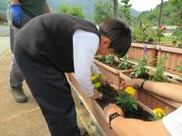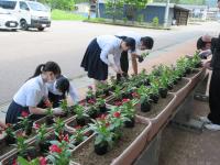 小学生・中学生がそれぞれ苗植えをしたプランターの花が少し草丈が伸び、色も鮮やかになってきました。