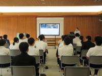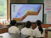 中1理科 日本列島の地震の学習において、地震や津波が起こる様子を動画で見ています。