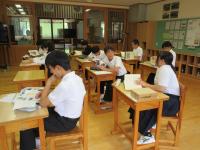6限 総合 3学年合同でオリエンテーションを行いました。各地区からお貸しいただいた村史を手に取り、話が弾む場面も。新たな発見があったようです。