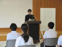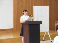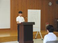 <中学校> 校内意見発表会 広報健康委員会の運営のもと、5限目に開催されました。学年意見発表会で選ばれた5人による堂々たる意見発表を生徒たちは真剣なまなざしで聞いていました。