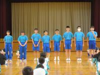 「白嶺っ子集会」 各委員会からのお知らせや、先生からのお話、マラソン記録会の表彰などがありました。