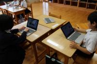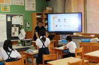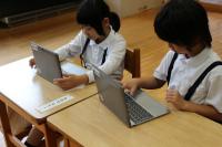 1年生 生活科 「がっこうたんけん」で撮った写真をみんなに紹介するための作業中です。
