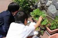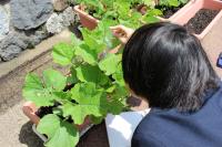 4年生 理科 ヒョウタンの観察をしています。草丈が30㎝以上になりました。