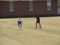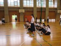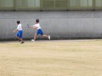 中1 上段:体育 リレーのバトンパスの練習をしています。 終了後は集合して振り返りです。