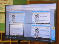 下段:社会 アプリを使用して自分の意見を書き、端末の画面を大画面に共有し深めています。