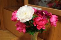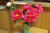 地域の方からシャクヤクの花がたくさん届けられました。ありがとうございました。さっそく学校に飾りました。