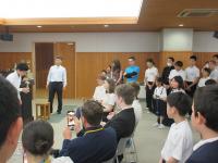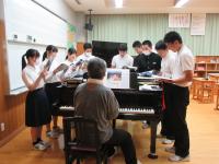 全校 合唱練習 前回のパート別練習の成果があったようです。よい声の出し方、口の開け方を意識しながら歌っています。