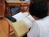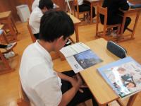 中3 総合 各自のテーマに沿って、村史を使って調べ学習をしながら、新たな疑問を見つけています。