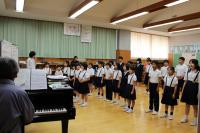 全校で合唱練習をしています。白山市の音楽会に向けて歌声を磨いています。