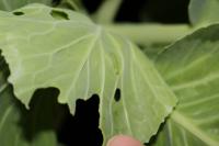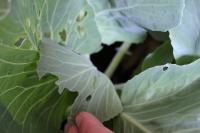 3年教室に置いてあるキャベツのプランター チョウの幼虫が育っています。