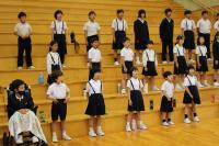 <小中学校> 来週18日の白山市小学校音楽会に向けて、小学生が中学生の前で合唱を披露しました。中学生から具体的なアドバイスをもらい、更によい合唱になるよう練習をがんばります。