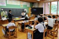 <小中学校> 今日は、白山市の姉妹都市である米国コロンビア市の高校生をお迎えし、中学校の授業体験と小中学校児童生徒との交流会をもちました。
