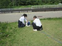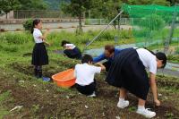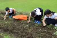「福島ひまわり里親プロジェクト」 5年生がヒマワリの花壇の草取りをしてくれました。