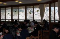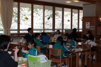 給食 ランチルームの窓から見える桜がきれいになってきました。