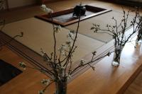 校庭に折れた枝を拾って生けておいたら、花が開き始めました。