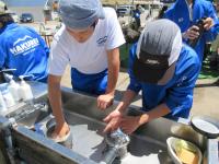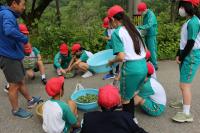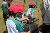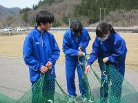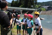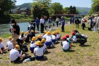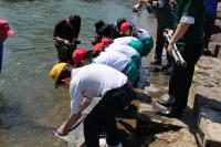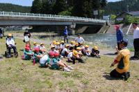 3年生は大日川で鮎の放流を行いました。約14,000匹の鮎の稚魚を放流しました。