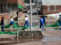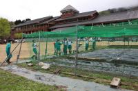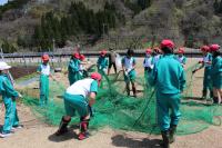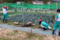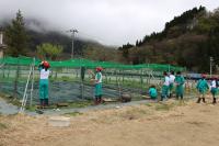 5・6年 学校の畑にネットを取り付けました。