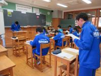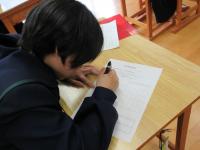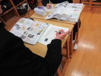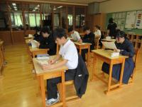 生徒たちは新聞記事を要約し、記事に対する自分の意見を書くことに真剣に取り組んでいました。今日は、能登半島地震や奥能登豪雨の被災地で他県の中学生がボランティア活動に取り組んでいるという記事でした。