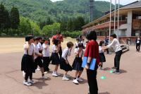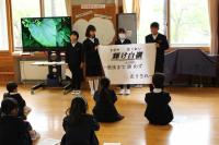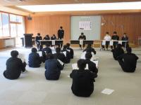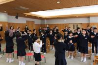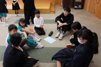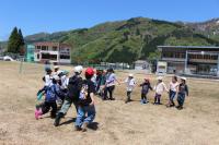 来週行う予定の「春のジオパーク学習」に向けて小中学生合同の集会がありました。縦割り班のメンバーとの顔合わせをした後、当日の山菜採り、天ぷら・あざみ汁・飯盒炊さんなど調理係の分担をしました。