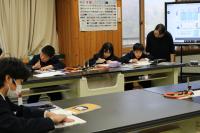 中学1年生 理科で地震や津波が起こるしくみについて話し合っています。