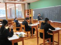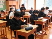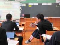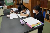 (中学3年)英語では既習事項の復習を、社会では大正デモクラシーについて、ペアやグループで取り組んでいます。