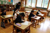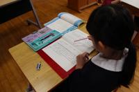 4年生 算数「折れ線グラフ」 テストをしています。