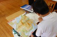 3年生 社会 校区の地図を見ながら、見学してきたことを振り返っています。