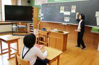 中学2年生 ALTに向けて山麓のよさを伝えるための発表の練習をしています。