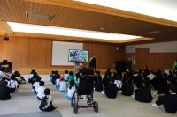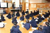 本日警察の方を講師としてお招きし、全校でお話を聞きました。いじめの定義や何がどんな法律に触れるのかについて学ぶとともに、みんなが安全・安心して学校生活を送ることについて考えました。