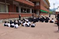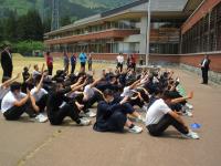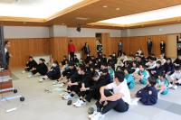 <中学校> 今日は部活動発足会がありました。一年生も正式に加入した初めての部活動です。卓球部、水泳部、陸上部のどの部も先輩の凜々しい姿がありました。