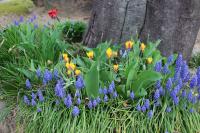 暖かい日差しのもと校庭のシャクナゲの花が咲き揃いました。昨年度の1年生が植えたヒヤシンスも咲き始めています。桜の花はもうそろそろ終わりです。