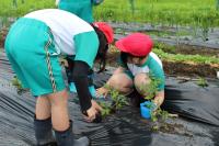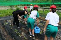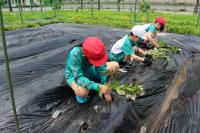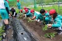 5・6年生は畑に野菜の苗を植えました。サツマイモの苗も植えました。