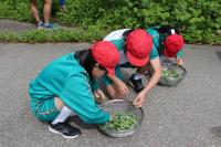 5・6年生 総合的な学習の時間 ヨモギ(餅草)を校庭で採取しました。草団子づくりをする予定です。