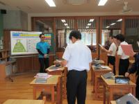 火災を想定した避難訓練を行いました。校長先生から、火災のときの煙の恐ろしさについてお話がありました。自分の命を守るために大切なことを確認したり、防火扉を開けて避難する体験をしたりしました。
