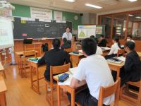 「授業力・学力向上について~子供主体の授業を通して~」 小中合同の教員が参加して研修会を行いました。白山市教育委員会の指導主事の講義後、グループ協議で今年度の学校研究の重点等について話し合いました。