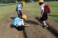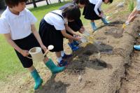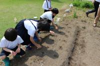 3年生 サツマイモの苗を植えています。