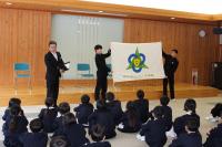 「白嶺っ子集会」 今年度前期の委員会から、メンバーの紹介と各自のめあての発表がありました。今月の歌をみんなで元気に歌いました。また、6年生からは「1年生を迎える会」についてのお知らせとお願いがありました。