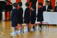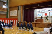 「第18回入学式」 小学校・中学校にそれぞれ新入生が加わりました。新1年生は大変姿勢がよく、お話をしっかり聞いていました。上の学年に進級した在校生も、さらに「進化」しようと意欲に満ちていました。