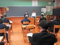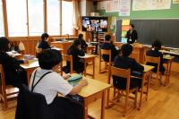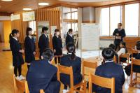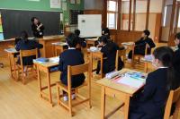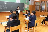 1年 社会「オリエンテーション」 中学校での社会科の授業について、準備するものを確認しています。