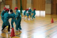 1・2年 体育 「おにごっこ」 みんなで楽しそうに「こおりおに」をしています。