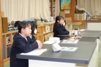 6年 理科「オリエンテーション」 6年生は中学校の先生と授業をします。まずは自己紹介から…。先生に自分のことを知ってもらうために、好きなものや得意なことを話しています。
