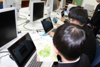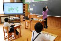 5年 社会「世界の中の国土」 大陸や海洋の名前、位置などを地図で確かめています。