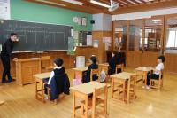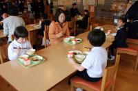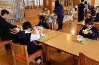 1年 「給食開始」 さあ、待ちに待った給食の時間です。みんな「おいしい!」「もっと食べたい」と笑顔です。