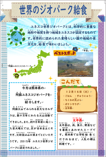 今月の世界のジオパーク給食は熊本県の「阿蘇ユネスコジオパーク」です。