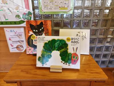 他にもエリック・カールの日本語版、英語版の絵本もあって、みなさん、興味を持って絵本を手に取っていました