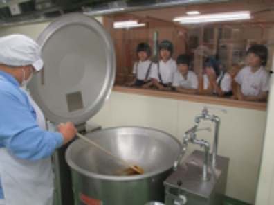 今日は小学1年生が生活科のお勉強で、給食室の見学に来ました