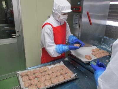 ハンバーグは給食室で一つ一つ丁寧に形を整えて、手作りしました