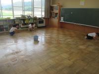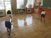 4・5・6年生がワックスがけを行いました。教室の床はピッカピカになりました。