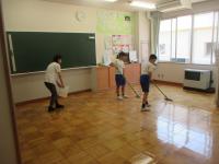 5年生は家庭の学習で掃除の仕方を学びました。その学習を生かして普段からお世話になっている地区会館を掃除しに行きました。児童たちは、場所に応じた掃除の仕方を工夫するとともに、日頃の感謝を込めてきれいに掃除していました。