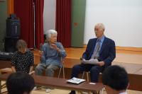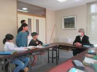3・4年生は総合的な学習の「私の町のすごい人」の取材で、東谷口公民館長の堂新橋さんのお話を聞きに公民館に行きました。